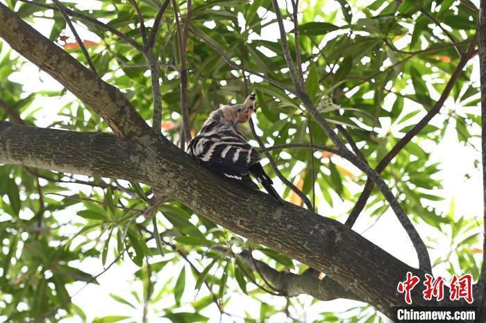 图为戴胜鸟在树上逗留。中新网记者 李志华 摄