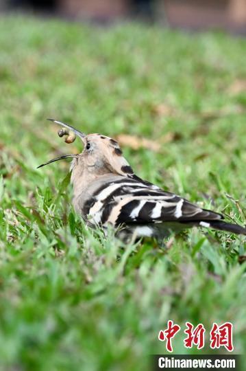 图为戴胜鸟吃虫子。中新网记者 李志华 摄