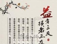 “益友”与“损友”,是指有益的朋友和有害的朋友。《论语•季氏第十六》载:“益者三友,损者三友。友直,友谅,友多闻,益矣。友便辟,友善柔,友便佞,损矣。”