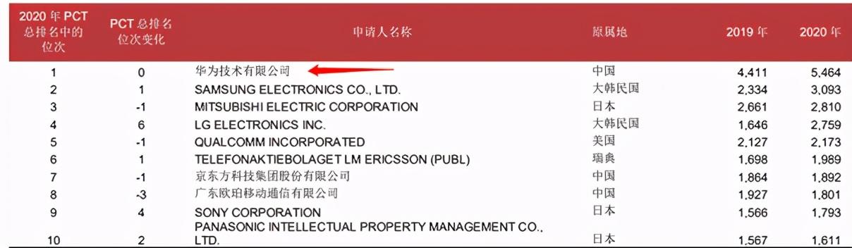几个月前,世界知识产权组织公布的一份报告,显示各国、各企业通过《专利合作条约》提交的国际专利申请量。