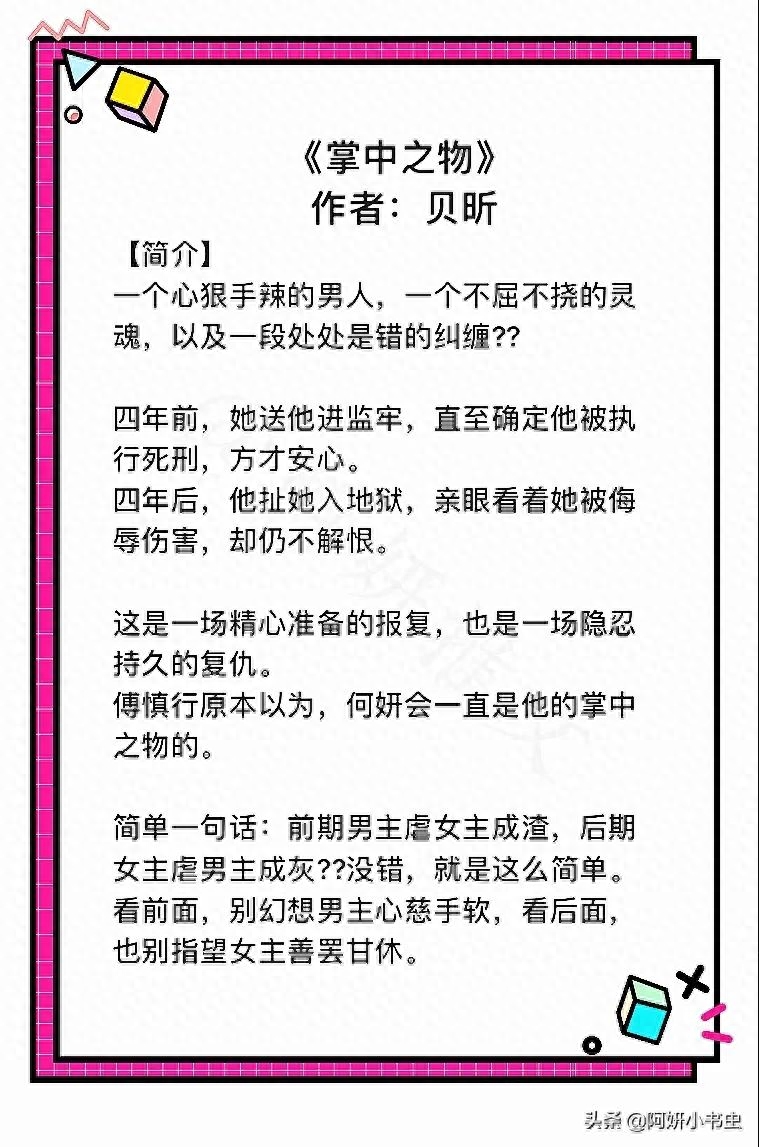 今天推荐的是男主为了得到女主,而不择手段的那种。看《掌中之物》的时候小编真的想打死男主,但是看到了电视改编后,我既然心疼起来了,这真的是“只要反派长得帅,三观跟着五官走。”不要学小编奥!!*-*#小说#