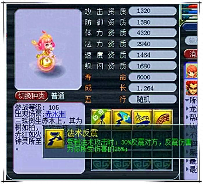 我在想,策划是跟法系有什么样的深仇大恨!新出的宝宝,自带法术反震技能,这货怎么长的跟幽莹娃娃差不多?