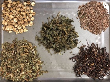 3) 包煎药煎煮方法及品种举例:将药物装入纱布袋内捆好,与群药同煎。包煎药品种主要有辛夷、旋覆花、葶苈子等易糊锅底以及有刺激绒毛的中药饮片。
