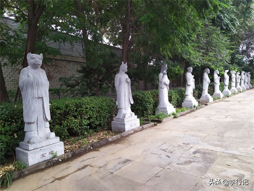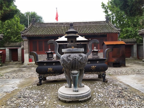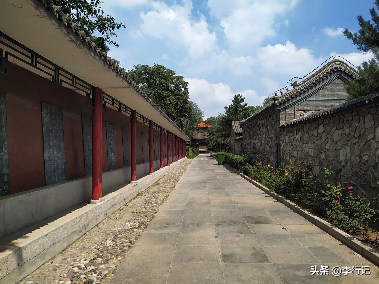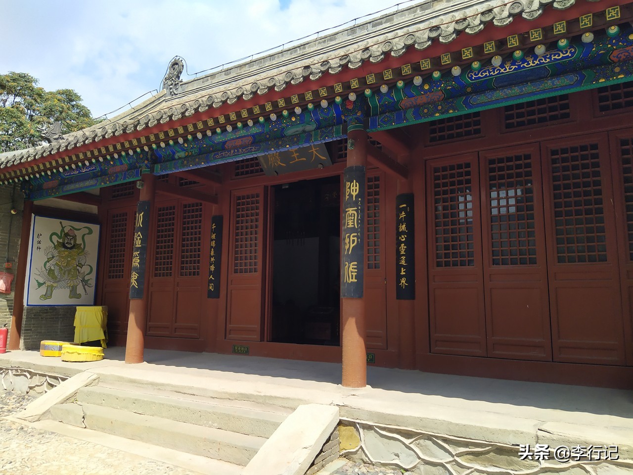 走进山门是大王庙的一进院子,东西两侧的配殿是文昌 殿、关帝殿,正殿为大王殿,殿内正中央供奉的武官是水官大帝,神像上面金堤永固四个大字为光绪御笔书写。二进院东西的配殿分别是慈航殿和三星殿主殿为龙王殿,龙王殿殿内正中供奉的镇水龙王,神像上面永佑安澜四个大字为慈禧御笔书写。后院是碑林院,院中间有四座石碑,西北东三面是诗廊,北面有垂花月亮门,门上匾额禹门,穿过月亮门,门外有土山,山上有元龟亭,亭内有石桌上刻九州山川四个字。