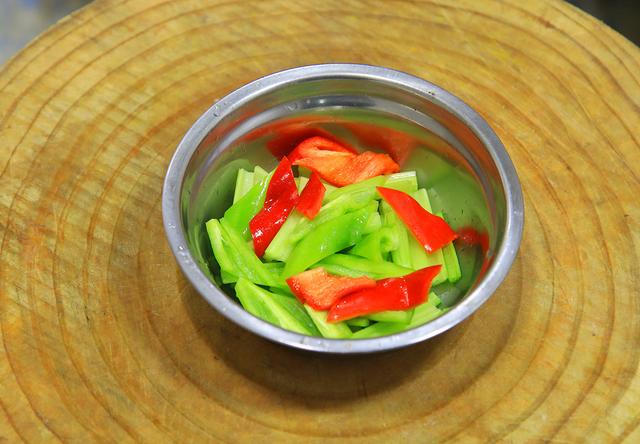 2.讲究准备芹菜三根切成段,青椒半个切成菱形片,红椒半个同样切成菱形片,和芹菜放在一起,青红椒主要用来配色比较好看。