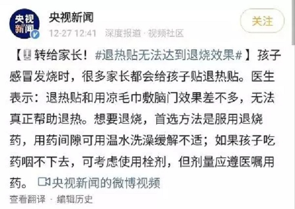 1、央视曝光:退热贴不能退烧!儿科医生解答真相,退烧还有3大误区!·医师报妇儿频道·2020-05-01
