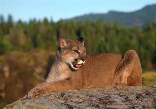美洲狮又称美洲金猫,大小和花豹相仿,拥有无与伦比的速度与力量以及极高的智商,善于游泳和爬树,也善于奔跑,每小时能跑53-64公里,跳跃能力极强,能从12-13米高的树上或悬崖上跳下,也能跃过3米以上至6米的高度或5米以上至13米的距离,所以对20米以内的猎物,只要奋力跳跃两次就可以捕到