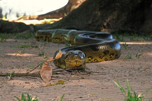 世界上也许还有其他种类的蛇与森蚺一样长,但体积却根本无法与之相比,成年个体体长超过五米,体重可以达到一百五十公斤,森蚺的牙齿向后弯曲,一旦被森蚺缠住,你根本不可能指望用手能把它解开。被这样的大蛇缠住只能慢慢欣赏着自己骨头断裂的声音然后在窒息与血管爆裂之中死去,就连凯门鳄也是它的食物,一般的食肉兽见到它能逃则逃。