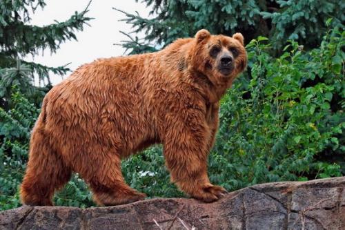 科迪亚克棕熊,世界上最大的熊,体重最高可达800千克,站起来身高近三米,但它的速度也绝对不会迟钝,它跑得比水牛还要快。科迪亚克棕熊最让人畏惧的武器是它锋利的牙齿和破坏力极强的爪子,不过庆幸的是它比较倾向于素食,植物性食物占其日常饮食的60-90%,