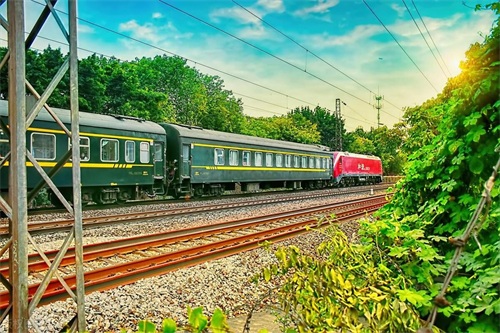 一列行驶中的绿皮火车