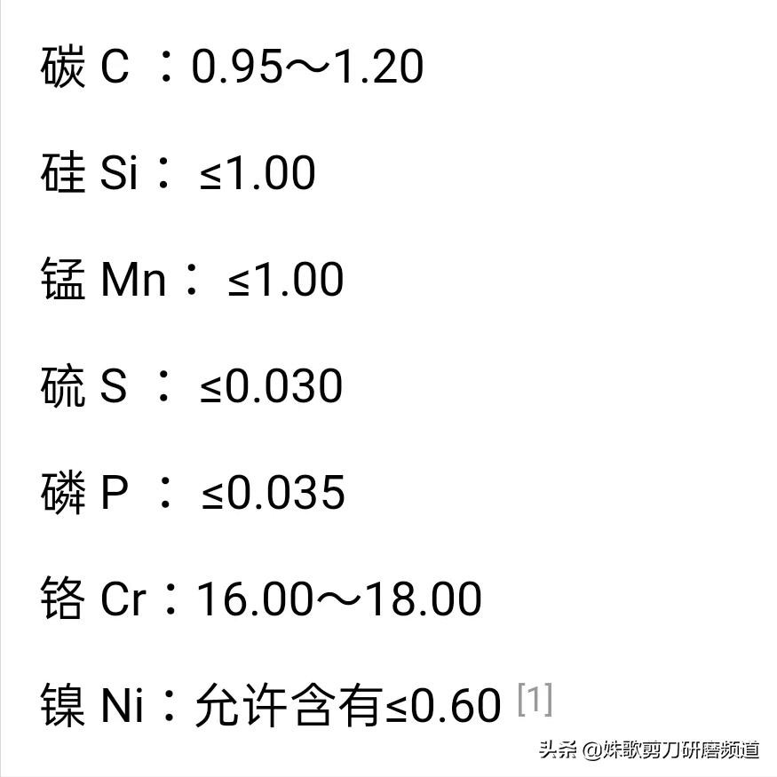 那么440C它是日本和美国的一个编号称呼,在国内这个材料就叫做9烙18鉬,9烙18鉬就是我讲的这个元素就是0.9的碳含量,18的鉬!这个就是不锈钢的代号,其他的里面的那些什么硅,锰等其他的一些元素!其实理论上来讲,甚至有一些是要尽量更少的,比如说硫,有些是要做去硫化的,处理的硫是越少越好的,硫以硫化铁的形式存在于钢材内面,过量容易使钢材变型!