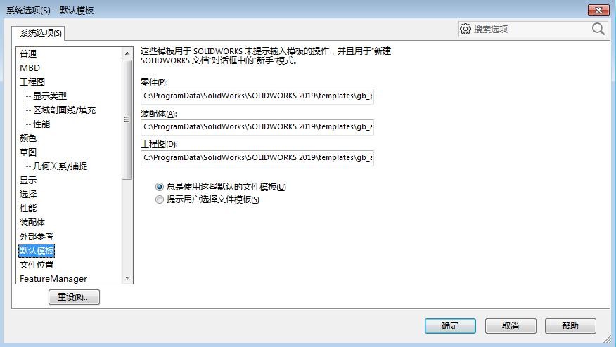 然后分别选择“零件模板”和“转配体模板”框,如图: