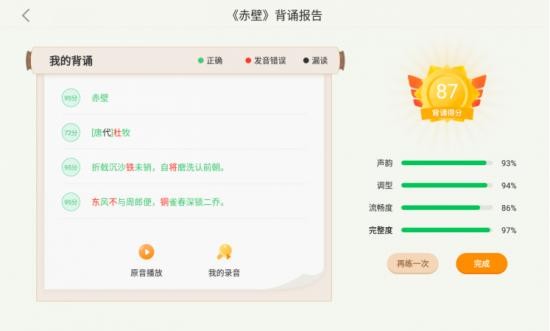 诗词天地这项功能最初是在小学版里才有的功能,收到了非常好的反响。在接到很多家长的反馈后,科大讯飞学习机在中学版中也添加了此项功能。在中学语文课本中,古诗词和文言文可是占了不少比例,而且往往都是要求背诵和理解的,科大讯飞学习机就充分发挥自己在智能语音和人工智能方面的优势。拿朗读这一功能来说,只要轻轻按下录音键读课文,朗读完成后,系统会自动生成朗读报告,从“正确、错误、漏读”等多方面进行评分,帮助孩子读的更正确。总之,诗词天地能让孩子听读背轻松学,赏析经典,感受中华传统诗词之美,学习成绩自然也容易提高。