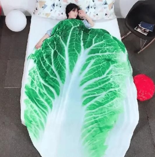 这样的被单真的会有人买吗哈哈哈哈哈哈哈,睡在上面莫名觉得自己是被卷在白菜里的烤肉啊哈哈哈哈哈哈,突然饿了是怎么回事?!