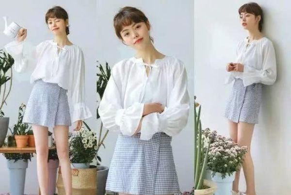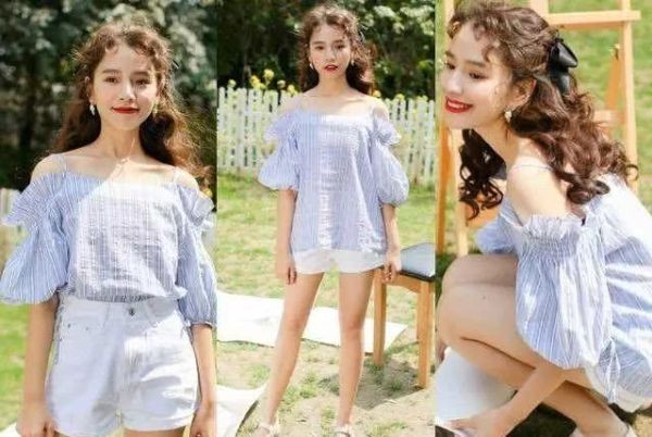对于黄皮肤女生来说,穿上浅蓝色变得妥妥的白暂的肤色,别不信,穿上就给你不一样的小清新感~这件是小露肩的蓝色衬衣款式,无论是塞进裤子还是放下来,都非常好看,搭配这条白色短裤,高腰设计,露出修长的大腿,小个子穿上也很好看哦。可以外搭一双白色小单鞋,春夏少女感扑面而来!