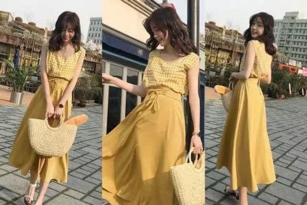 别老是喜欢荧光色拉,其实柠檬黄才是最显白的,即便是黄皮肤女生,穿上也有很高级的女神范~这条柠檬黄连衣裙是中规中矩的款式,圆领设计有种文静的复古美,格子元素穿上身更时尚,下半身是迷笛的A字裙款式,上身还做了细节的格子区分,配合收腰十分好看!