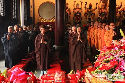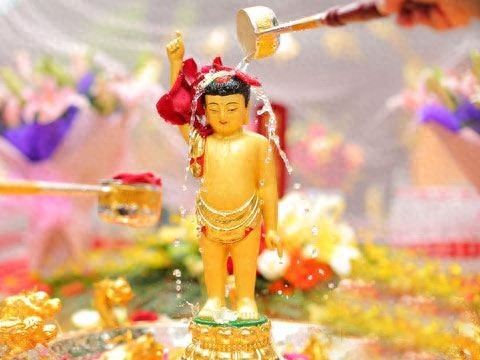 到了这一天,佛教界要举行隆重的浴佛仪式。主持僧人点灯、上香、三跪九拜。全体僧众念经诵谒,鼓乐齐鸣,表达对释迦牟尼的崇敬和赞誉。众僧以名香泡制的汤水灌洗佛像,覆以花棚,饶钹交迎,载歌载舞,再颂佛经。然后分领浴佛香汤,再兑水沐浴自己,以求早成正果。同时还会购龟、鱼放生,举行大规模诵经活动。