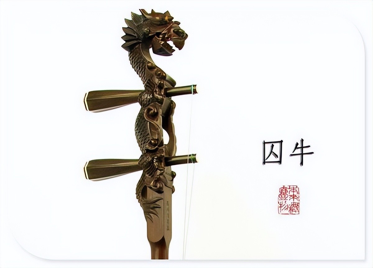 囚牛是龙的九个儿子中的老大,其名字源自于他在音乐上的喜好。据传,囚牛平生喜爱音乐,经常蹲在琴头上欣赏琴音。因此,人们将他的形象刻在琴头上,形成了传统的"龙头胡琴"。