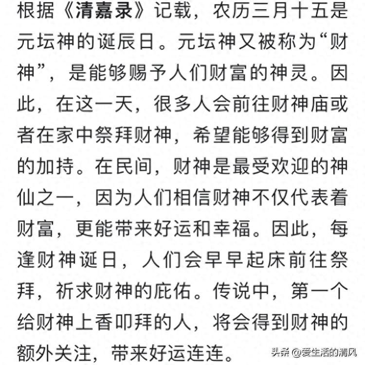 农历三月十五是元坛神的诞辰日和三大传统习俗,有什么寓意和象征