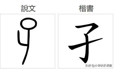 在《说文解字》中:子,十一月阳气动,万物滋,人以为偁。象形。古文从巛,象发也。籀文从囟,有发、臂、胫,在几上也。按,象儿在襁褓中足倂也。就是说“子”字象征着在农历十一月时,阳气开始活动,促使万物生长,人们认为这是一种充满生机的状态。这个字是象形字,其古文形式由“巛”(chuān)组成,代表着头发。而在籀文(古代的一种书写风格)中,“子”字由“囟”(指婴儿的头盖骨)组成,表示婴儿的头发、手臂和小腿,这些部分都显示在一个类似几案的物体上。根据《说文解字》的作者许慎的解释,这个字形就像是一个婴儿被裹在襁褓中,两脚并拢的样子。
