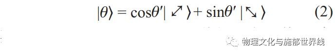 现在我们改变一下偏振片的方位,将它逆时针转动45°,然后再将处于同样偏振量子态θ的光子入射。现在将光子的量子态θ作如下分解比较方便: