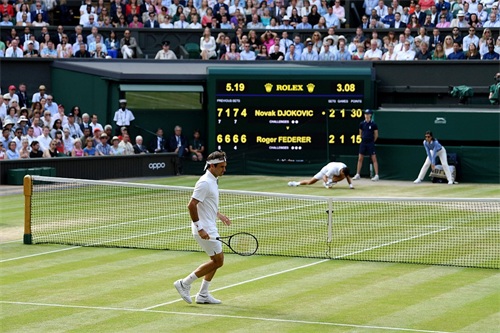前四盘双方战成2-2平。在第五盘,德约科维奇率先破发,但费德勒在第7局和第15局的破发逆转了形势,并在决胜盘中以8-7领先。在第16局比赛中,费德勒连续拿到两个冠军点。在那一刻,德约科维奇似乎要失败了,但令人震惊的是,费德勒错过了结束比赛的机会,德约科维奇绝地反击最终获胜。