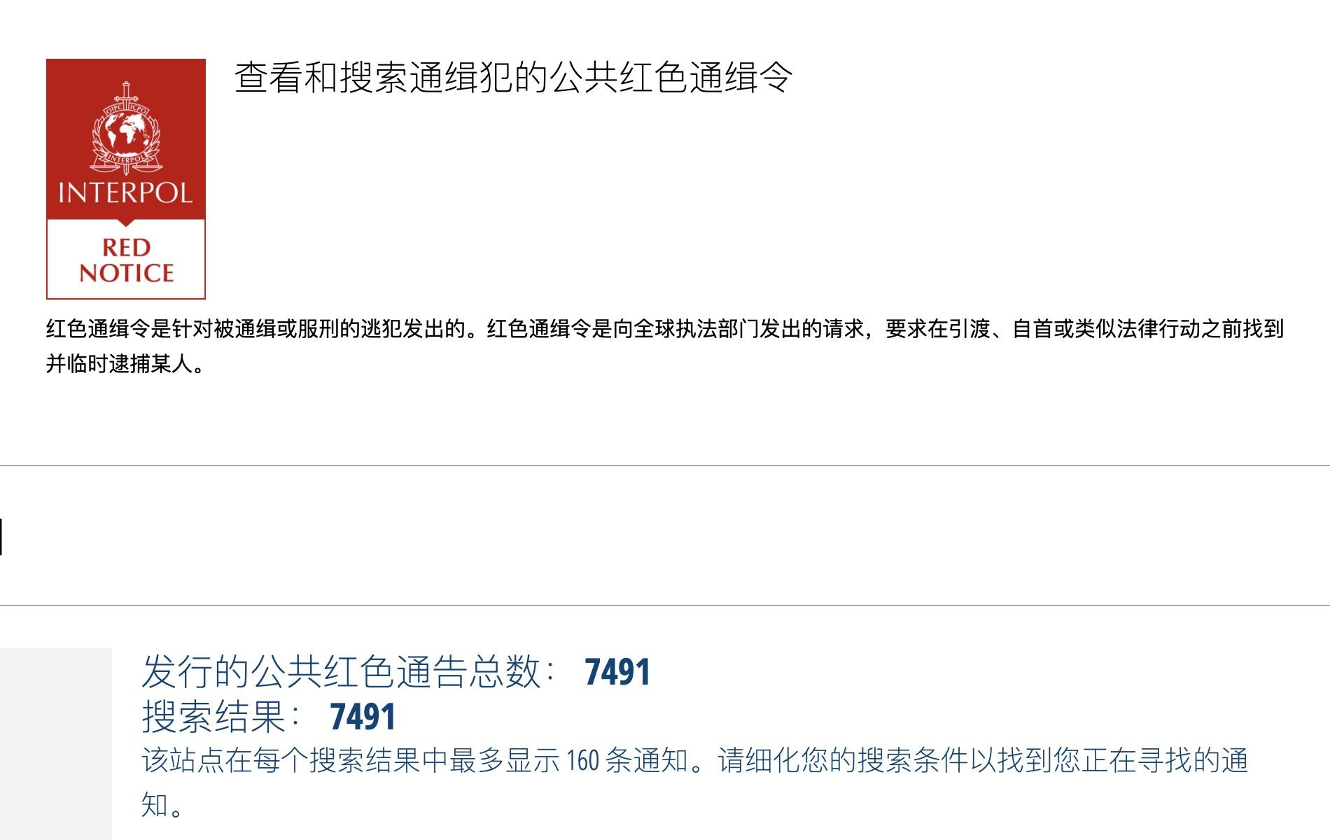 中国发出多少红色通缉令?