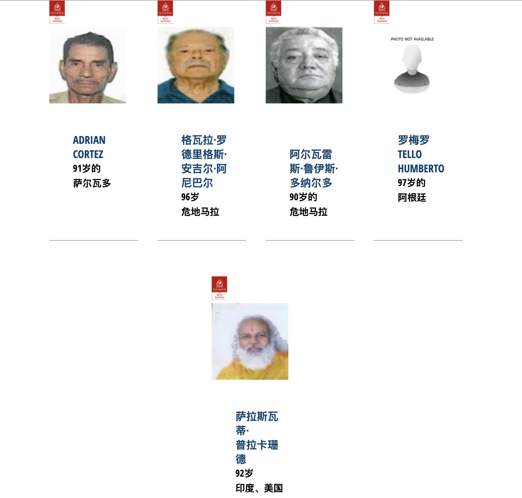 而90岁以上的红色通缉罪犯,居然还有5个人,其中年纪最大的是97岁的罗梅罗,来自阿根廷。看情况应该是被通缉多年,已经改头换脸藏匿不知道哪里,所以一直都还没被抓捕。