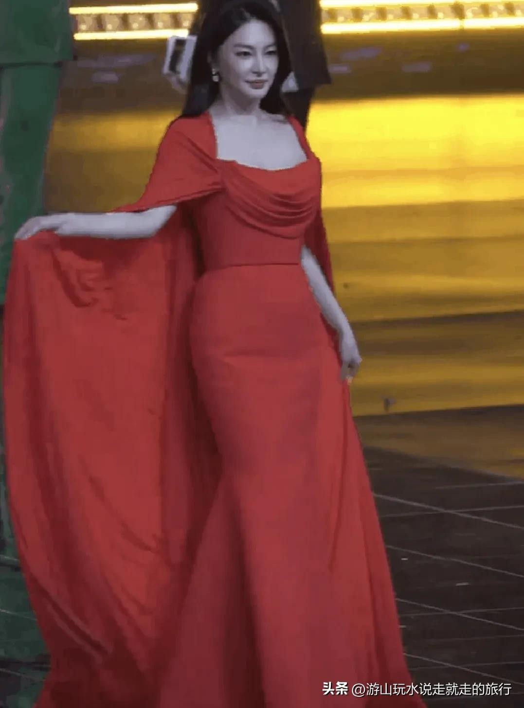 内场的大红连衣裙更是惊艳全场,仿佛自带女王 BGM。有粉丝在评论区疯狂打 call:“绮绮子这气场,内娱独一份!” 可也有人酸溜溜地说:“这胳膊上的拜拜肉,还当自己是小姑娘呢。”