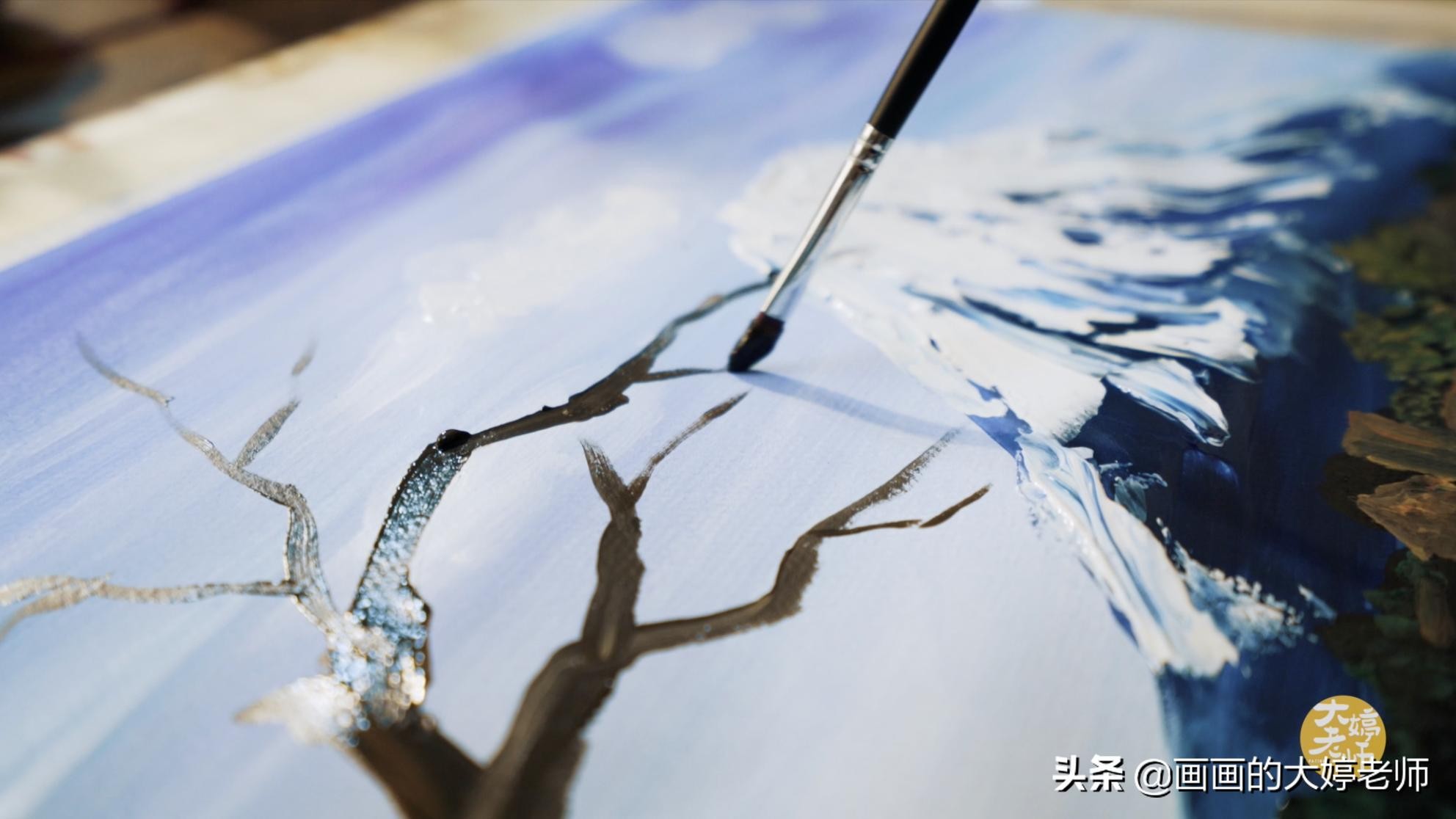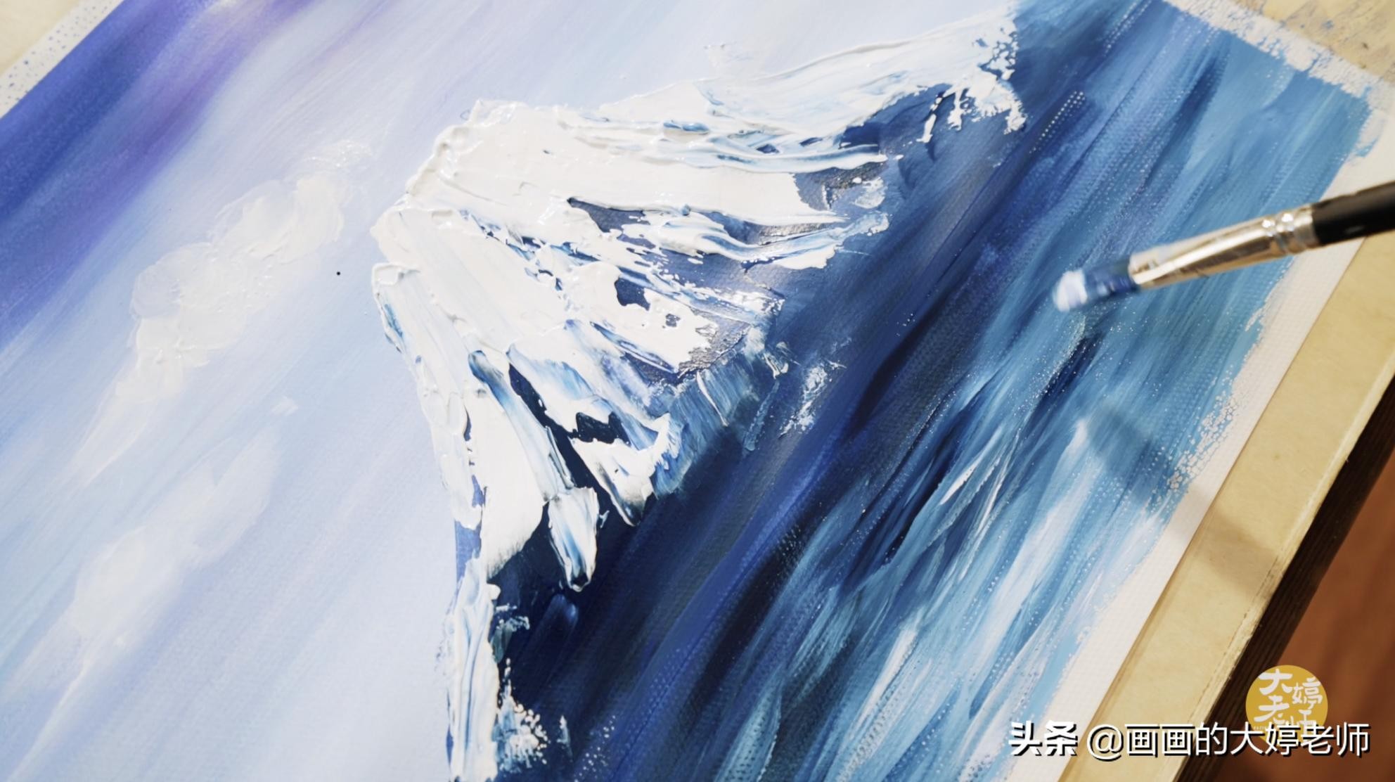 4. 刮刀挑白色从山顶往下抹,力气不要太大,不然容易把底色压出来。