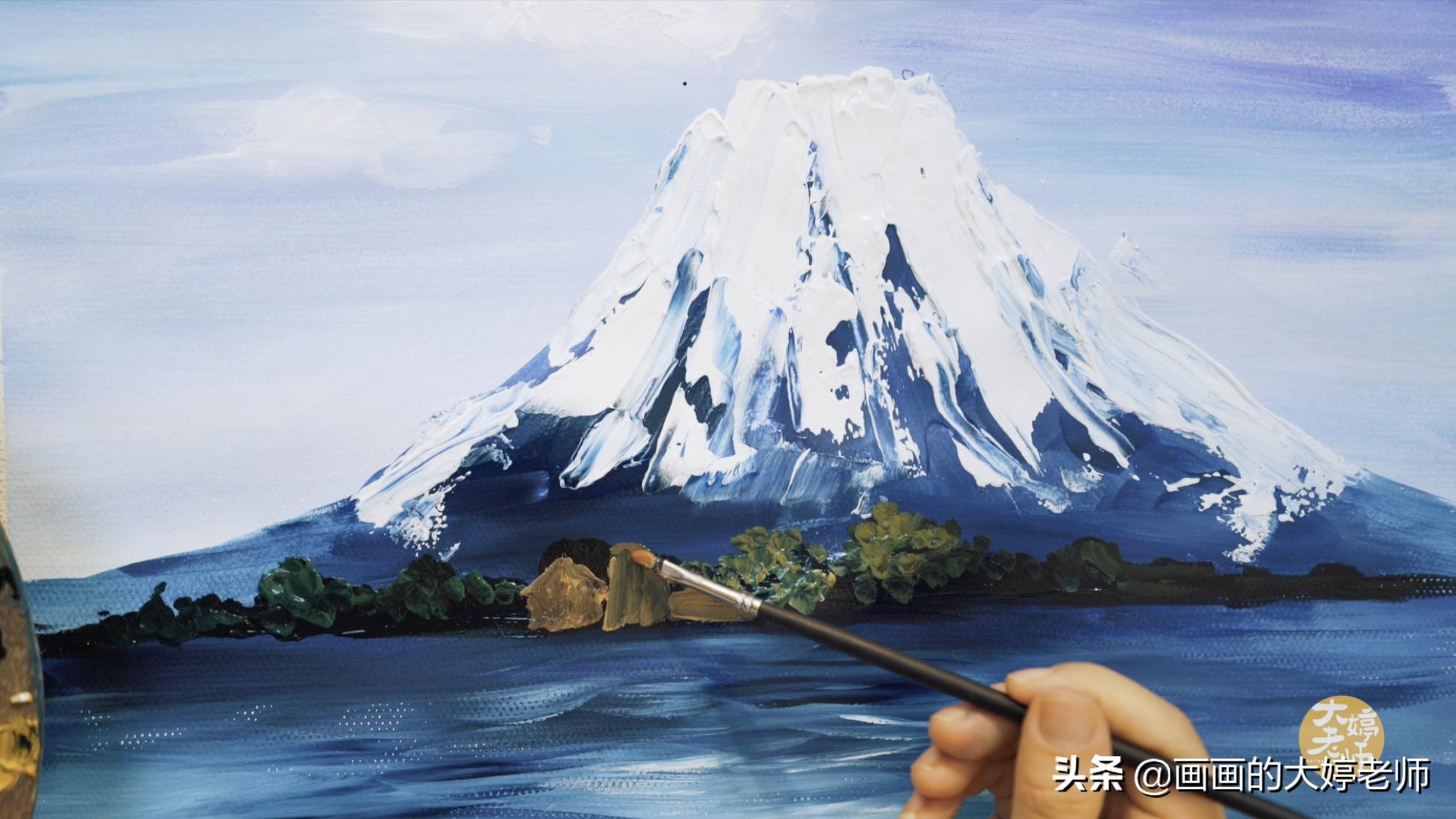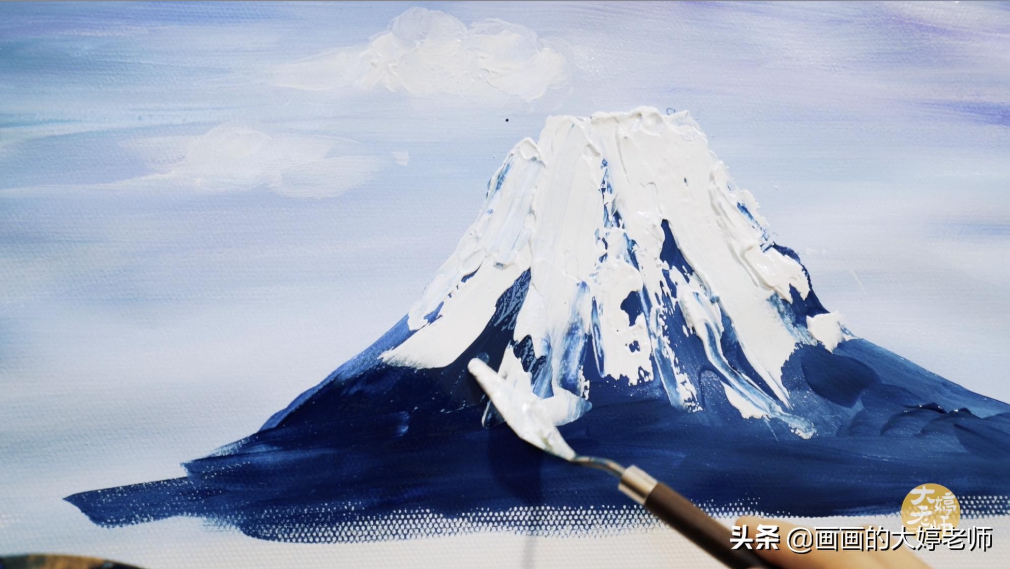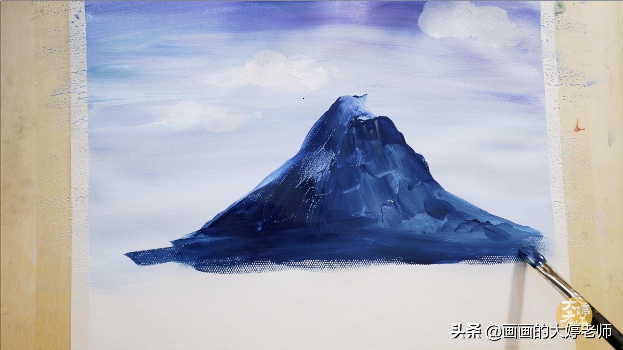 3. 普兰色画出富士山的大致外形,这个时候开始,颜料可以厚一些。