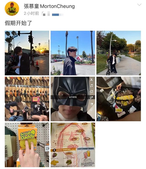 似乎因为学业,张慕童目前在美国生活。从他晒出的照片中能够看出,他在国外生活的生活过得潇洒却又十分接地气。