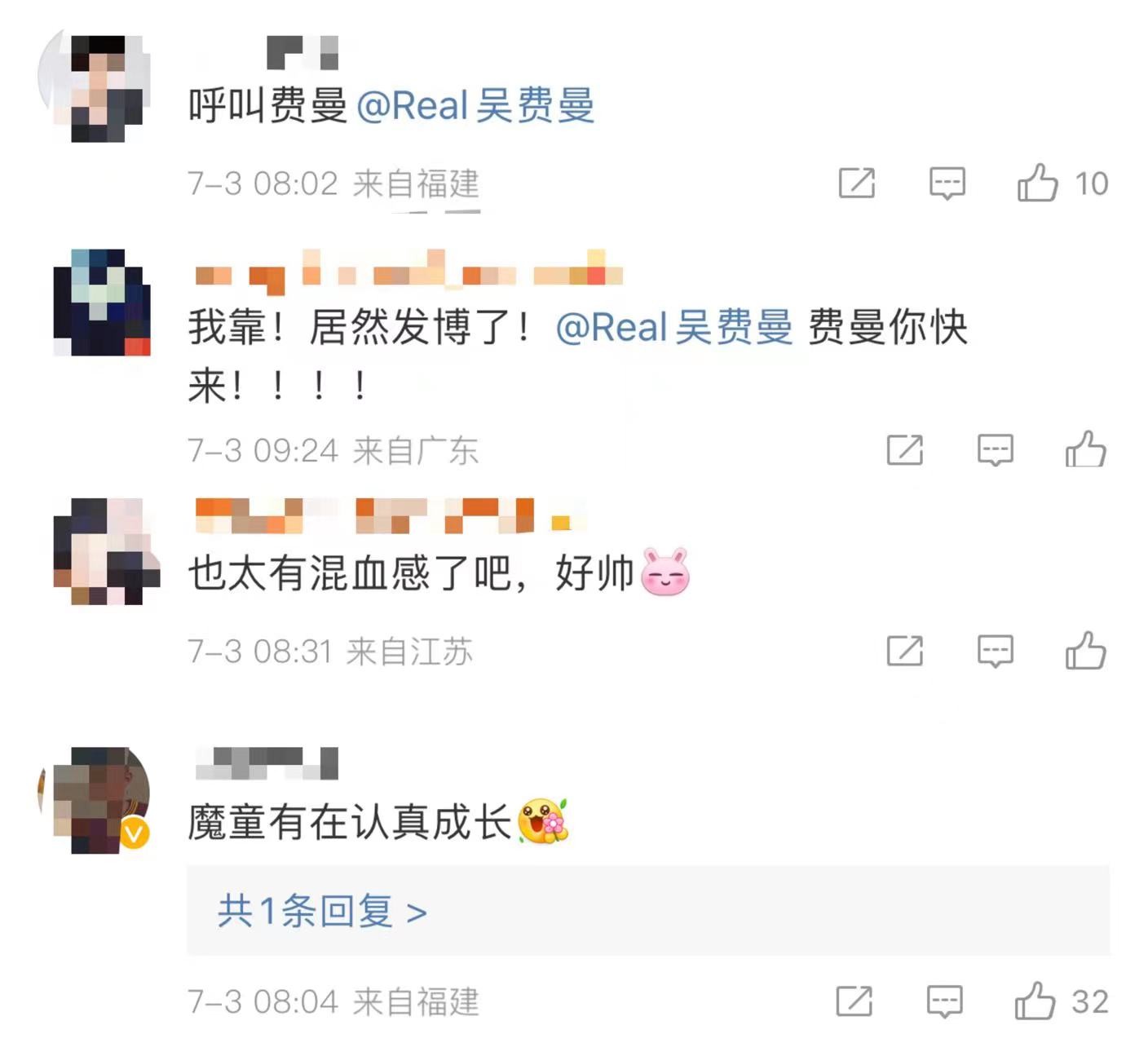 他会用蝙蝠侠滤镜自拍,还会在菜单上画搞笑的头像,让人看着忍俊不禁,不少人还开始呼唤吴镇宇的儿子费曼,希望两人有趣的灵魂能够再次碰撞出“火花”。