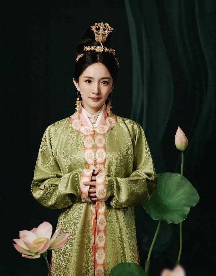 第三套服饰则展现了明代女性的华贵风采。杨幂身穿的明代仕女画中的式样,金饰点缀,熠熠生辉,彰显出明代女性的贵族气息。整个造型既典雅华贵,又不失现代时尚的元素,展现出了古代服饰的多样化与丰富性。明代的华彩,在杨幂的身上得以继承与传承,呈现出一种古代与现代的完美结合。