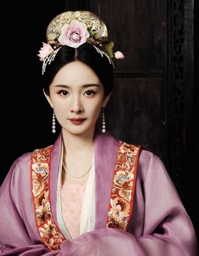 第二套服饰则将我们带入了宋代的雅致世界。杨幂身着的宋代贵族女子装束,清雅温婉,配饰着珍珠和簪花,尽显着古代女性的高贵气质。服装的色彩以莫兰迪色系为主,凸显出宋代女子的清新脱俗。整个造型既展现了宋代女子的优雅,又彰显了古代服饰的细腻品味。
