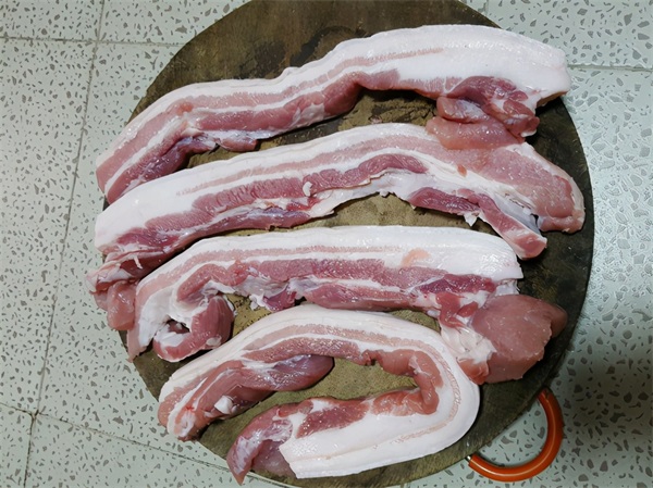 第一步、购买10斤新鲜五花肉,最近还是比较贵,这些肉得花200多元。除了五花肉,也可以用前腿肉,总之要肥瘦相间的。五花肉不要清洗,否则容易坏。