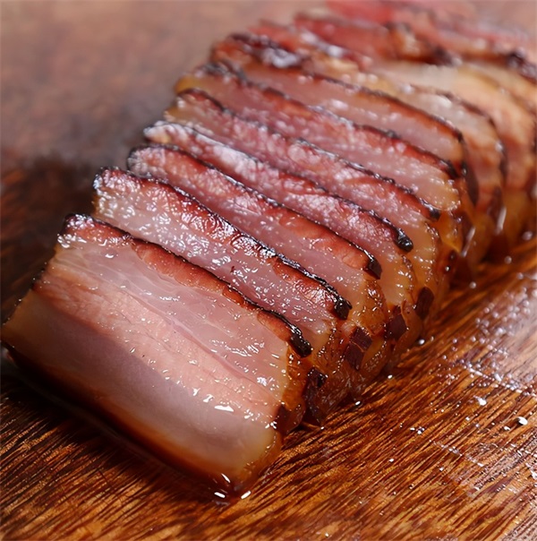 上乘的腊肉透明发亮,色泽鲜艳,黄里透红,肥而不腻,软嫩不塞牙,色香味俱全,素有“一家煮肉百家香”的赞语。