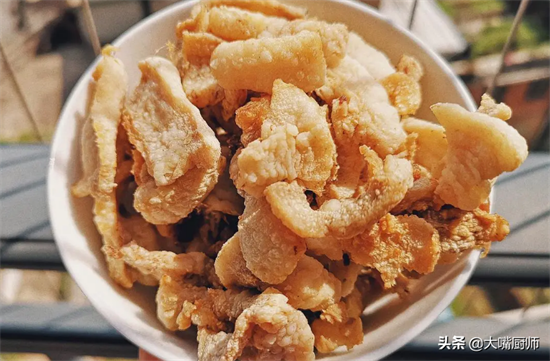 8、猪油渣别扔了,撒点盐或糖,也是很不错的小零食,吃起来香酥可口。或是用来炒菜、做馅,都非常香。