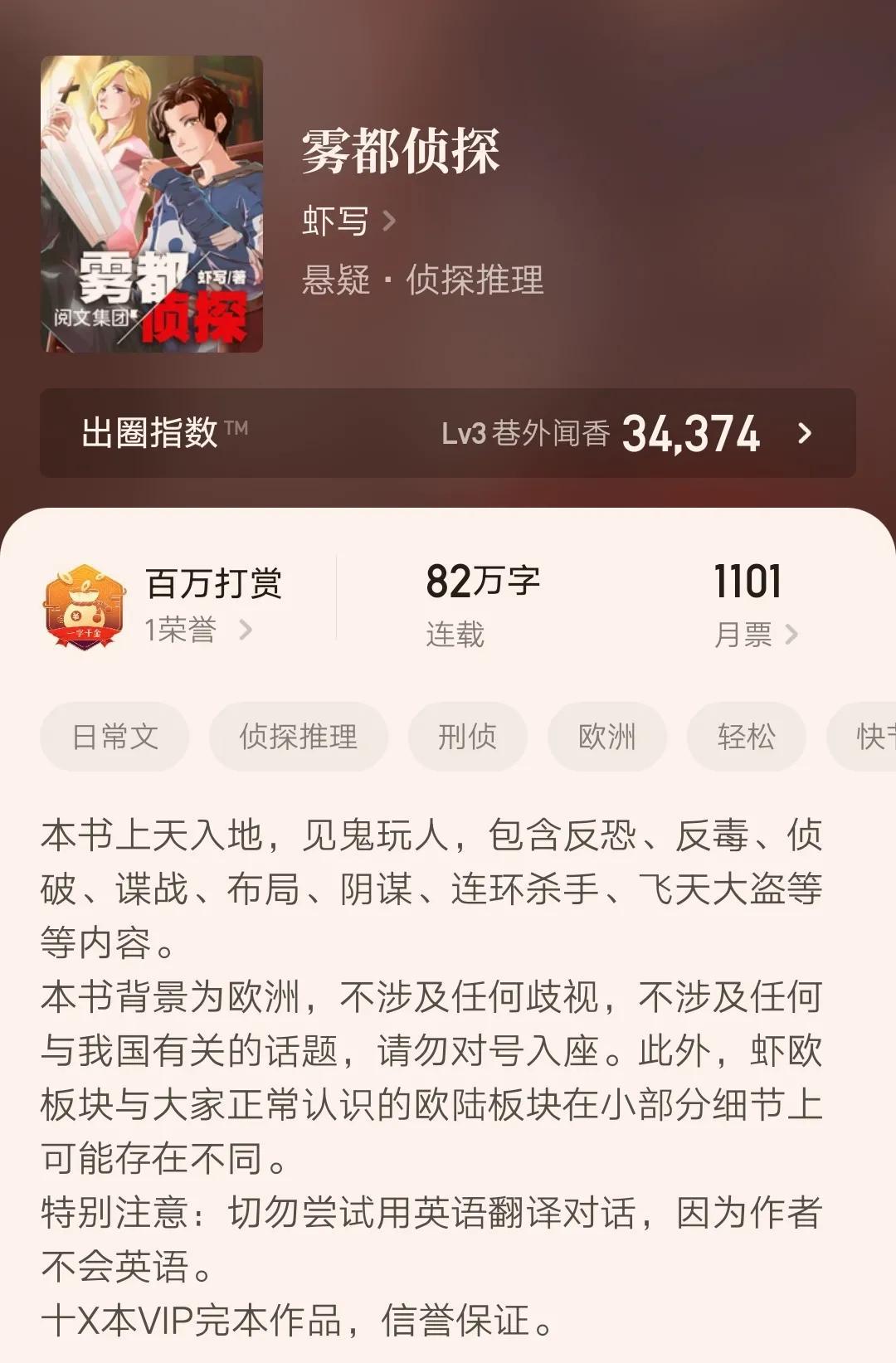 推荐一本悬疑 侦探类小说‖虾写的新作《雾都侦探》