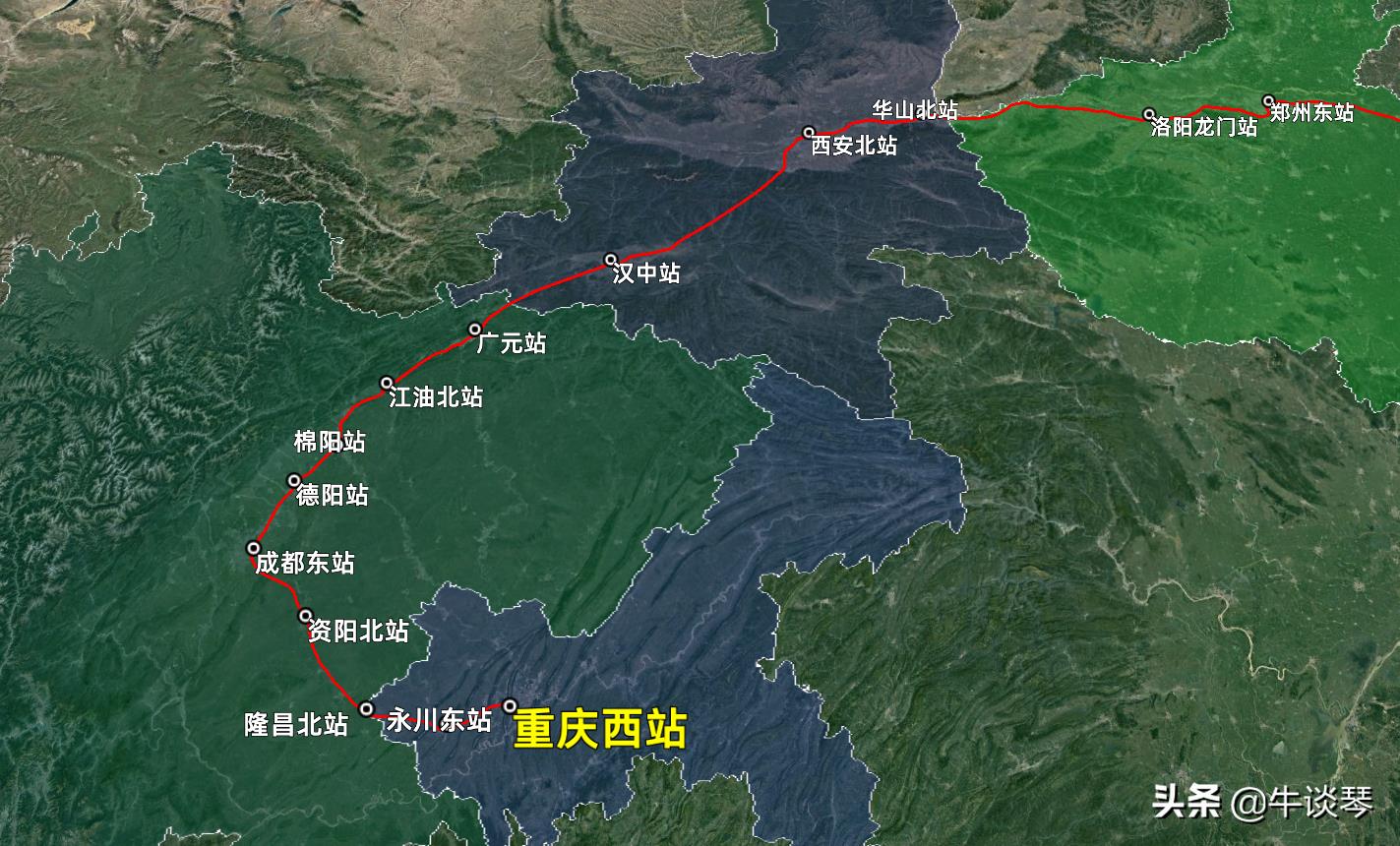 G1975次列车运行线路图:上海虹桥开往重庆西