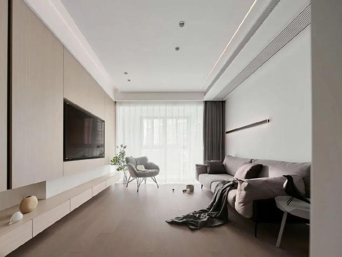 120平米三室两厅两卫嵌入式电视墙装修实景图