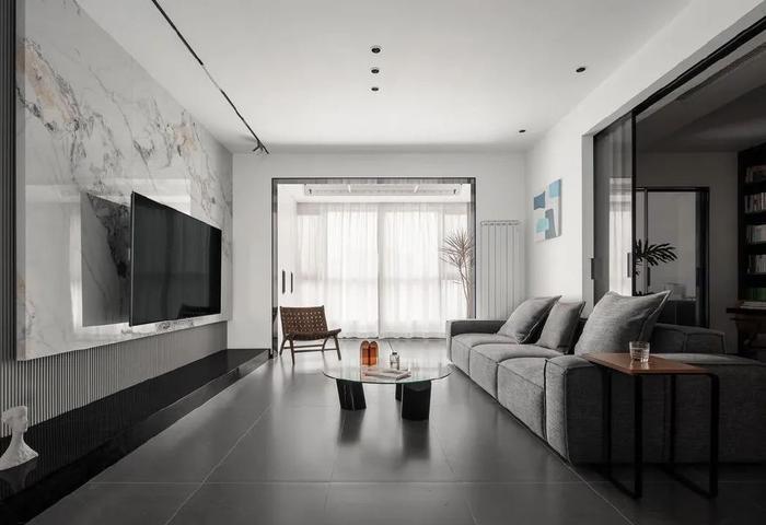 120平米三室两厅两卫大理石电视墙装修图片