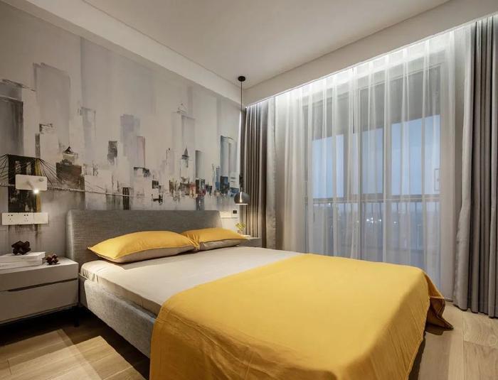 120平米三室两厅两卫卧室窗帘装修图片