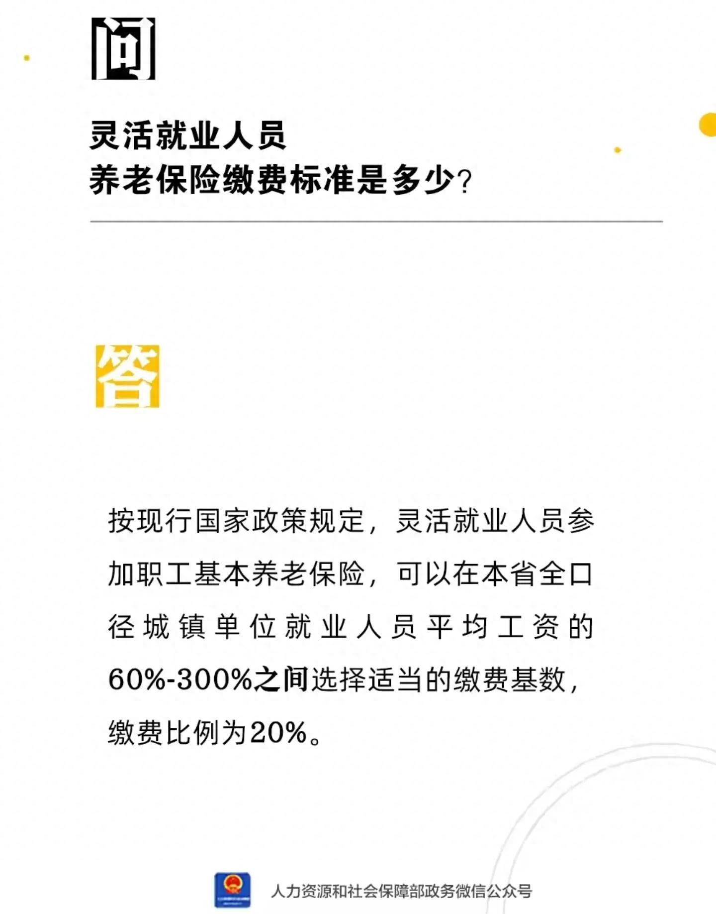 人社部:灵活就业人员养老保险缴费标准是多少?15年能领多少钱?