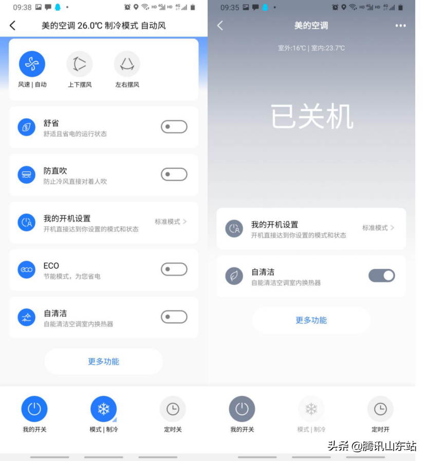 “智能”是很多产品都会推广的卖点,我们来看一下这款美的极酷空调是如何诠释“智能”的。在使用上,这款空调除了我们熟悉的遥控器操作,还可以连接美的美居APP,通过远程操控空调的运行。可以看到,APP的界面非常的简单,除了基本的调温度以及风向、风速等模式调节外,还有舒省模式,ECO以及防直吹等功能。简单说一下这个防直吹功能,这个功能在开启后,空调会根据智能算法自动调节风向风速,冷风不会一直吹一个地方,之前家里安装的老式空调,没有这个功能,方向定住后冷风一直吹一个地方,很容易造成头疼。实际体验中,开启后这个功能让笔者非常惊喜,尤其是在夜晚睡觉时,它会自动调节风向风速,第二天起床精神满满。对于家中有婴儿和老人的家庭来说这个功能可以说非常友好,很好的防止空调直吹产生空调病等不适。