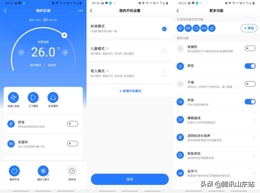 除此之外,APP上还有很多遥控器中没有的功能,比如开机设计中含有的标准模式、儿童模式、老人模式,也可以自定义,这样开机不用再次调节温度,省力很多。笔者最喜欢的一个睡眠温度自定义,设定一个舒适的温度,晚上也能美美的睡一觉。同时在夜间熄灯的情况下,显示屏也会自动熄屏,更加省电。