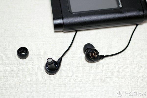 和现在主流的多单元耳机比,IE60给人的第一感觉就是耳塞好小。外观挺有特色的,耳塞的外表面中间是个是森海塞尔的LOGO,两边各有一个镂空,看起来有点像Superman的标志。