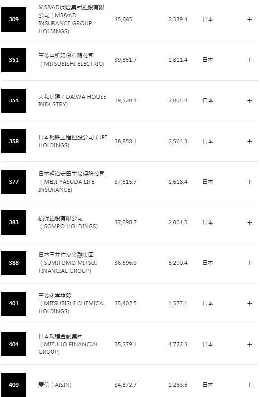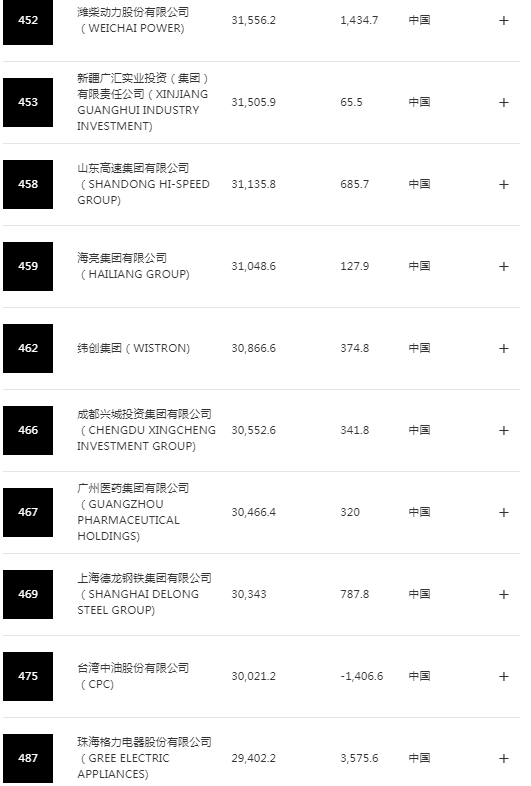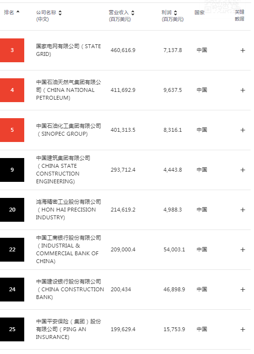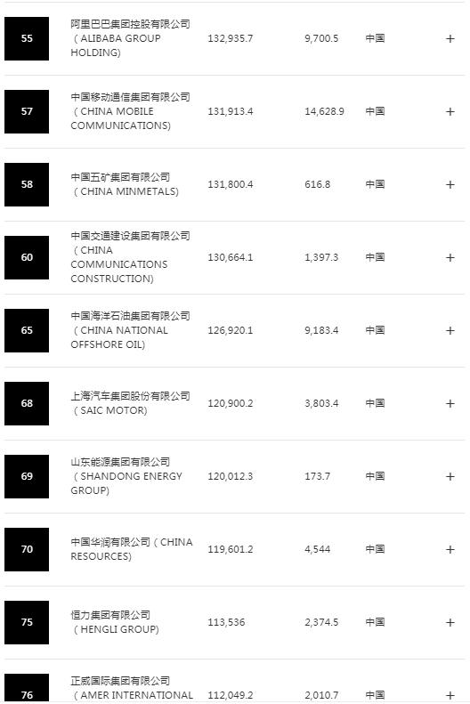 下面是中国进榜企业部分名单(145家太长了,不全部列出):