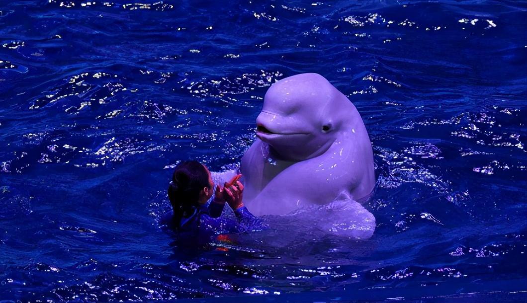 然而在水族馆里,它们根本找不到交流对象,为了防止白鲸交配或是打架,海洋馆通常不会将两只白鲸放在一起,对于一个7、8岁的孩子来说,它最大的乐趣就是交流,没有同类的时候,它们会选择将交流对象换成人类。