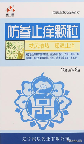 防参止痒颗粒,具有消风止痒、润燥生津的功效。由荆芥、防风、苦参、苍术、蝉蜕、牛蒡子、木通、当归、知母、生地黄、石膏、亚麻子、甘草组成。用于急性荨麻疹(风热型)、瘙痒症(血虚风燥型痒风)。